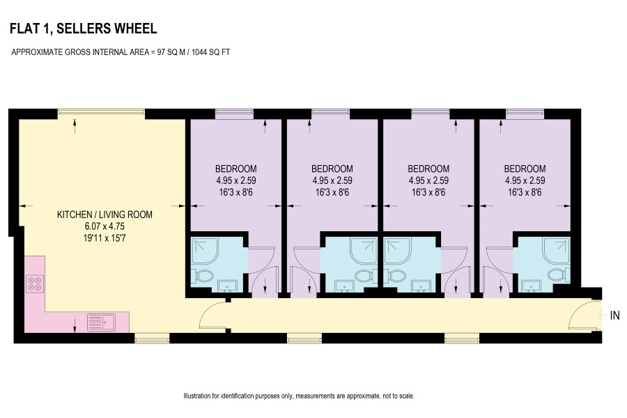 Our 4 bedroom apartments have open plan living/kitchen space and 4 en-suite bedrooms fitted to a high standard.